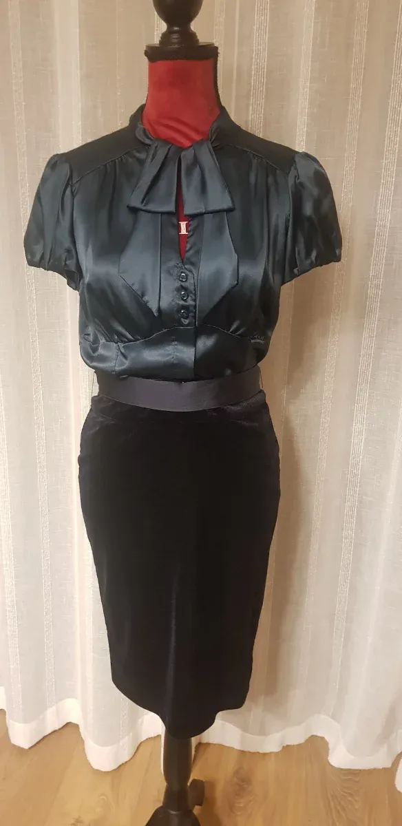 Conjunto Top Satén y Falda Lápiz Terciopelo