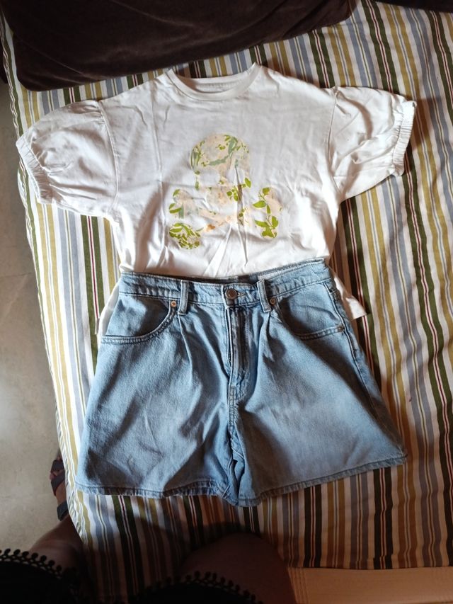 Conjunto top+shorts blanco y azul