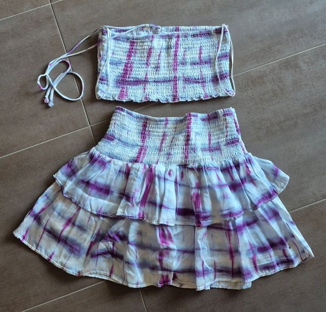Conjunto Top y Falda Brownie XS Morado Blanco