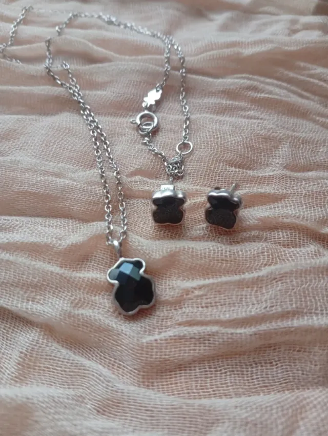Conjunto de joyería de la marca Tous, compuesto por un colgante y unos pendientes.