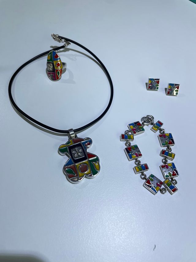 Conjunto Tous Oso Mosaico Multicolor Plata
