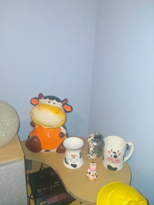 Detalles del productoConjunto de figuras decorativas de porcelana con diseño de vacas.