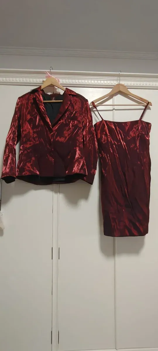 Conjunto Vestido y Chaqueta Rojo Metálico