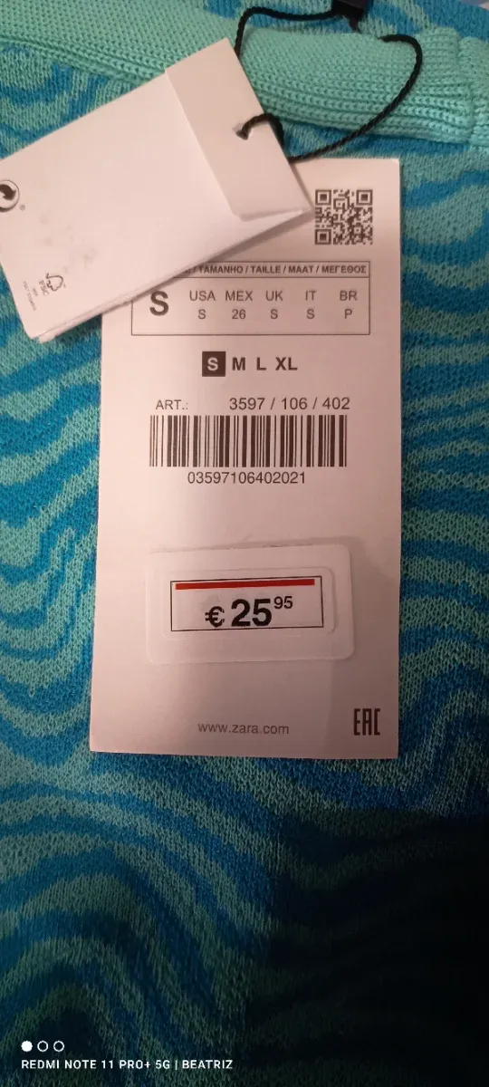 Sin estrenar · S / 36 / 8 · Zara · Verde azulado