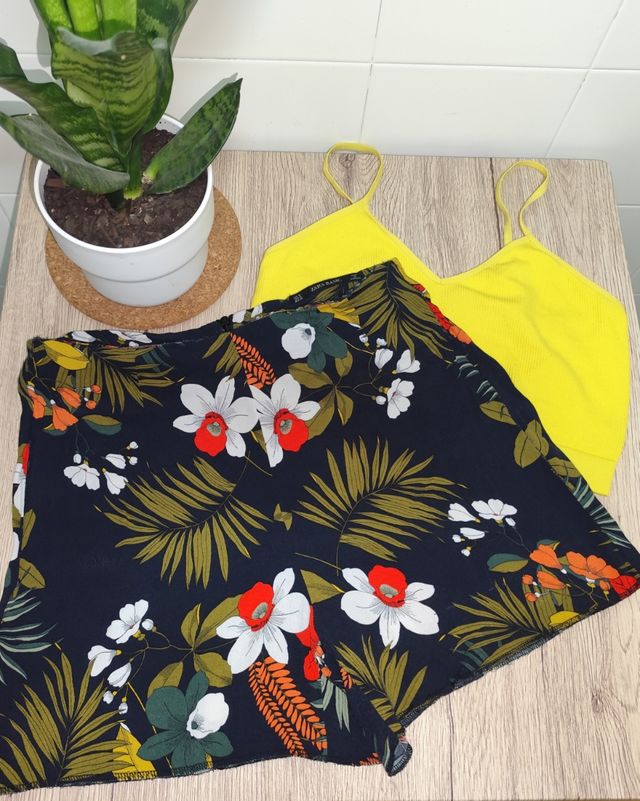 Conjunto Zara Basic: top amarillo + shorts