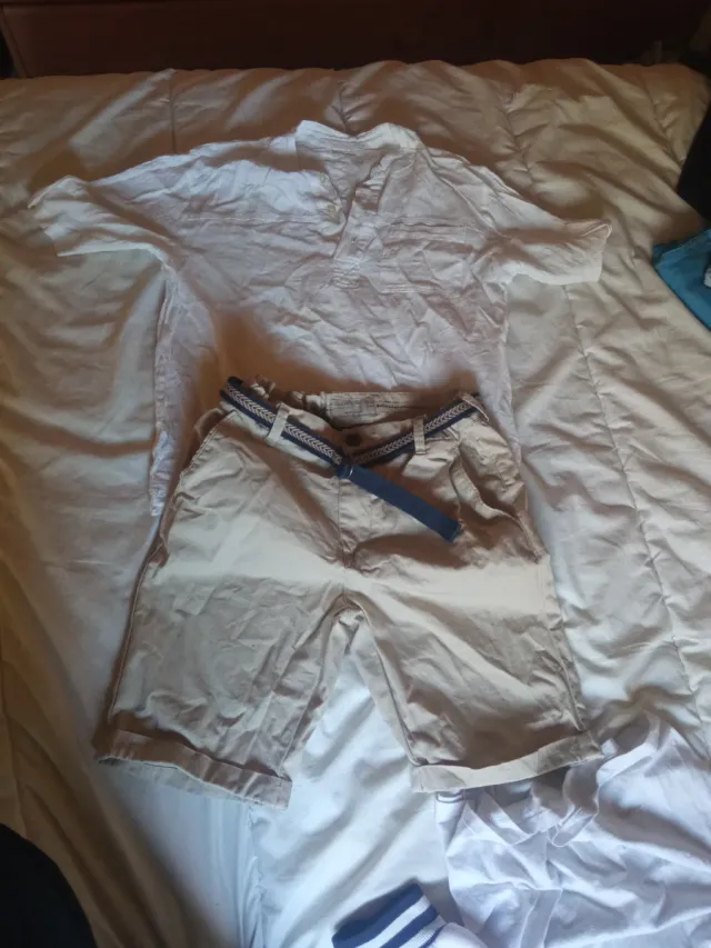 Conjunto Zara Camisa y Pantalón Beige Talla 8- 10