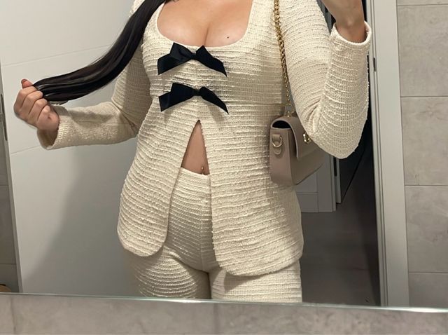 Conjunto Zara dos piezas pantalón y jersey lazos