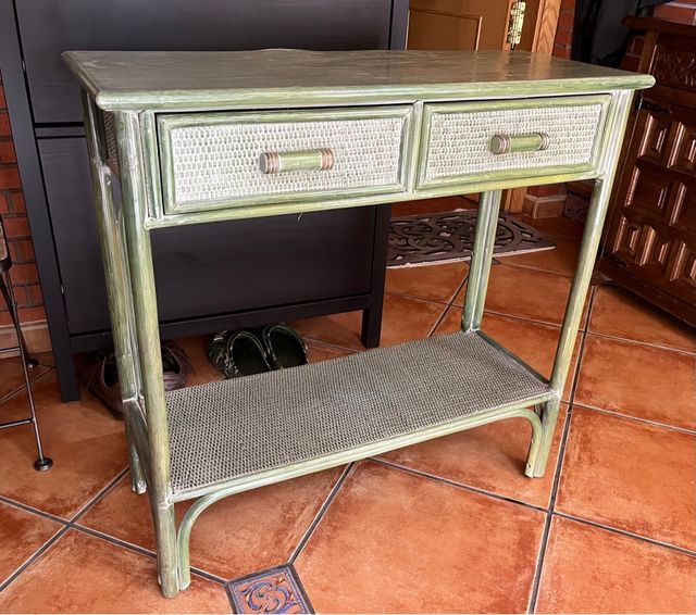 En condiciones aceptables · Verde y Verde oliva · Mimbre y Madera