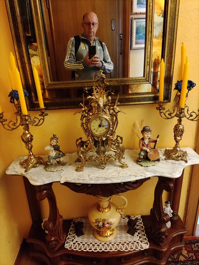 Consola con Reloj y Candelabros Dorados