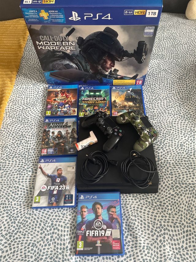 Consola PS4 Slim 1TB con 2 mandos + 6 Juegos