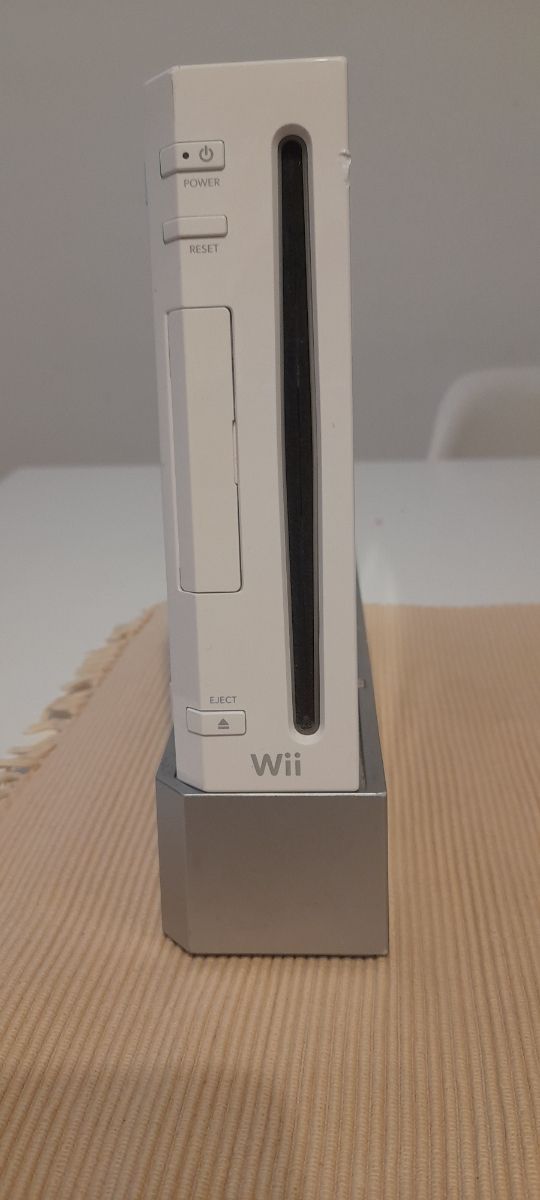 consola wii en buen estado. Lo únic que la tapa (se ve en la foto) está medio rota. Incluye: -2 mandos Nunchuck -2mandos wii -incluye cables de alimentación y movimento