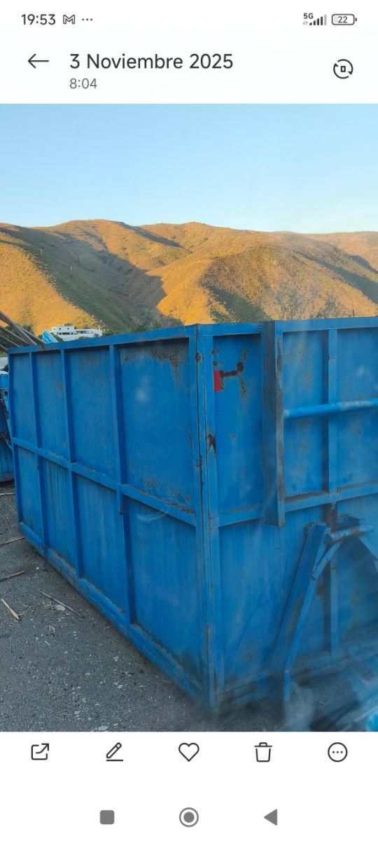 Acepto cambio .Contenedor metálico de color azul, diseñado para camiones pequeños. -medidas raíles 0.99 altura de gancho 1 metro, altura 2.20