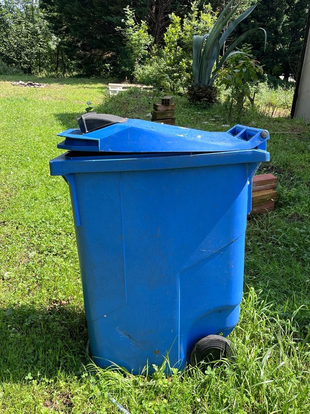 Detalles del productoContenedores de reciclaje de 360 litros, marca Contenur. Están en buen estado, aunque presenta algunas marcas de uso