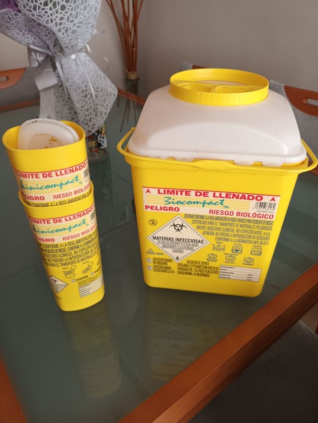 Vendo 3 contenedor para desechar agujas. 2 de 1L y uno de 10L. Los 3 por 10 euros.
