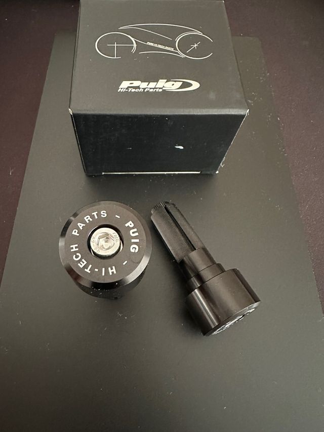 Contrapesos de la marca Puig para moto nuevos. - Fabricados en aluminio. - Color negro.