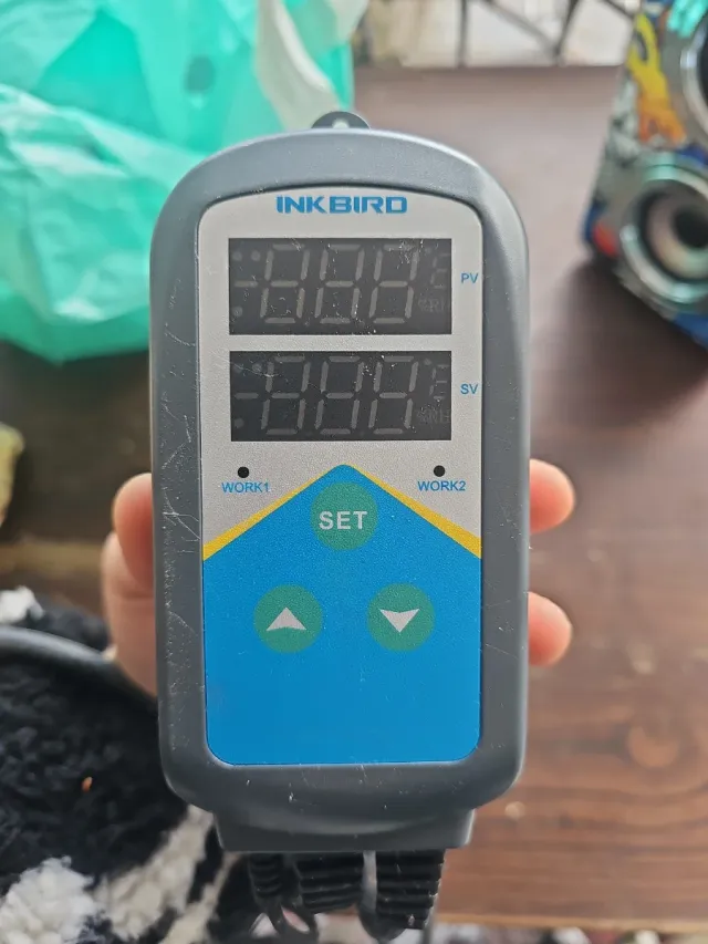 Controlador de temperatura Inkbird con pantalla digital. - Pantalla PV - Pantalla SV - Botones SET, flecha arriba y flecha abajo - Indicadores WORK1 y WORK2