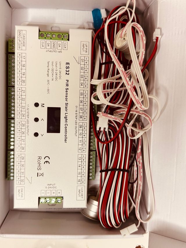 Detalles del productoControladora ES32 para iluminación de escaleras con sensor PIR.