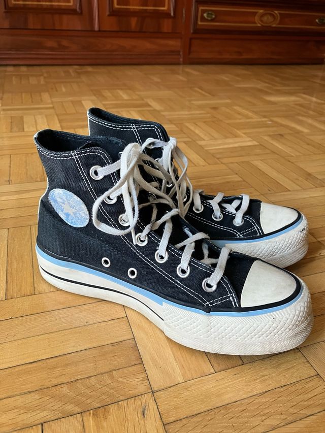 Converse negras con plataforma y detalles azules