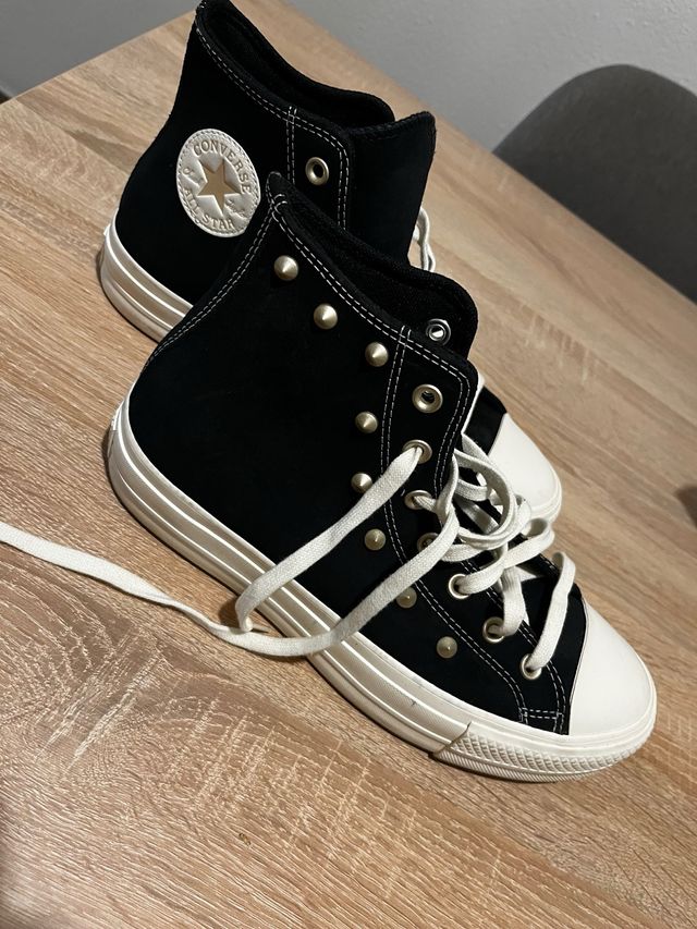 Como nuevo · 41.5 · Converse · Negro y Dorado