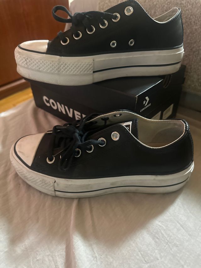 Converse Piel Negras Plataforma
