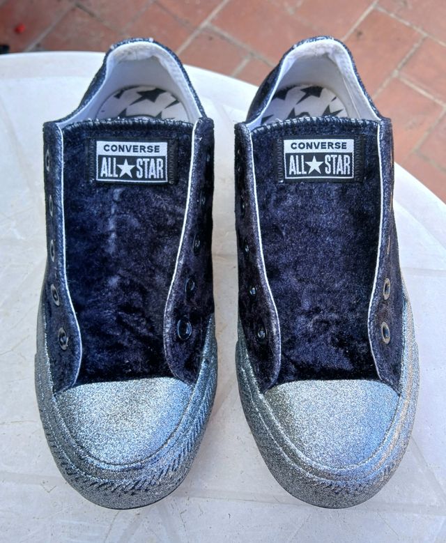 Como nuevo · 36.5 · Converse · Negro y Plateado