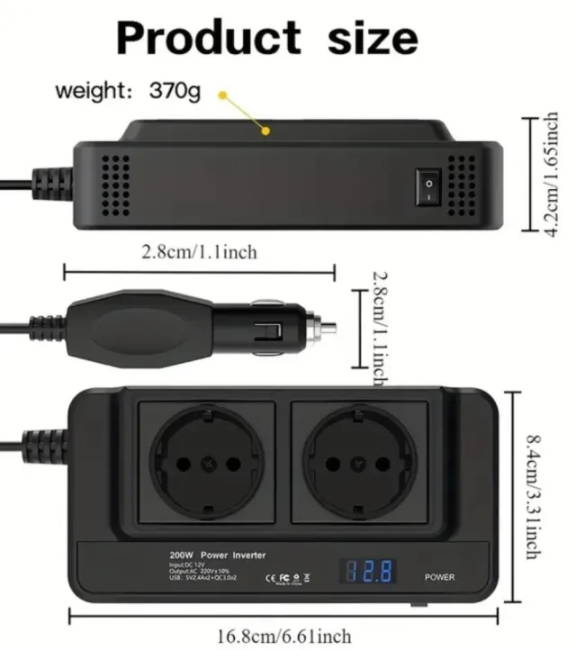 Detalles del productoEste convertidor de corriente permite usar aparatos de 220V en tu coche.
