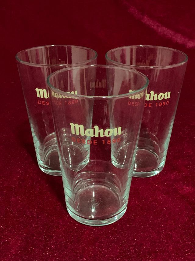COPAS; LOTE 4 VASOS CORTO CERVEZA MAHOU AÑOS 90.