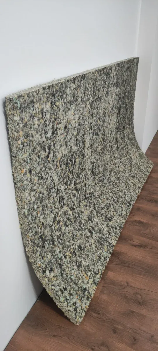Panel de Copopren, material ideal para aislamiento acústico y térmico. - Textura granular. - Color grisáceo con motas de colores.