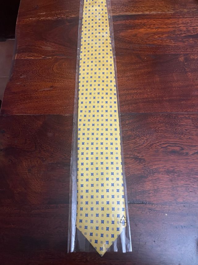 Corbata amarilla con estampado azul