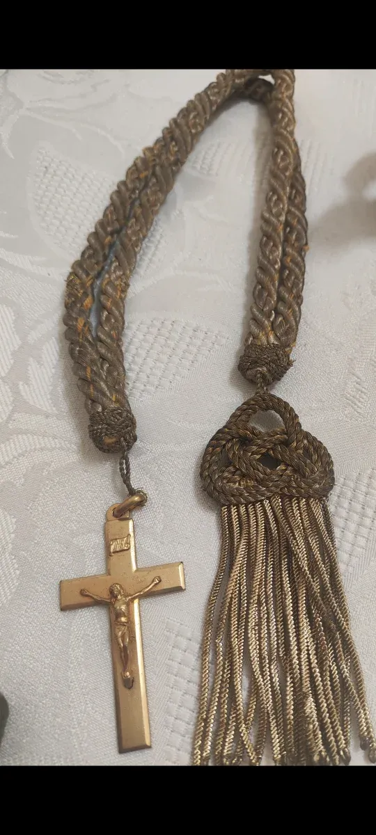 Lo que se ve y como se ve en la foto. Antiguo cordón de comunión con cruz en su extremo. No acepto regateos ni devoluciones