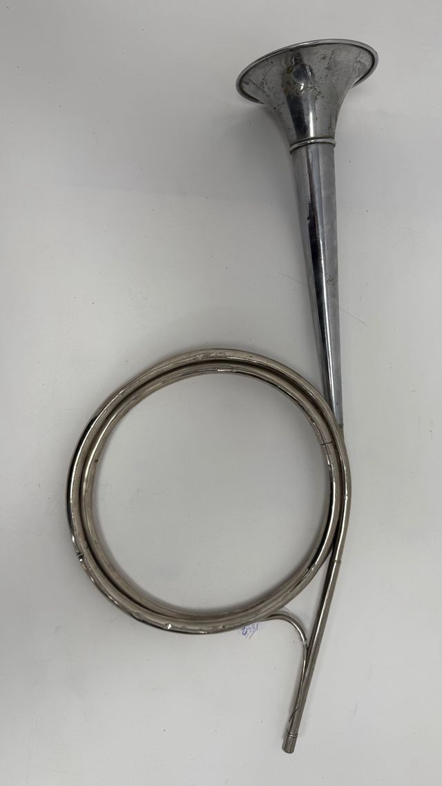 Detalles del productoCorneta decorativa de metal cromado, ideal para coches clásicos. Su diseño curvo le da un toque distintivo.