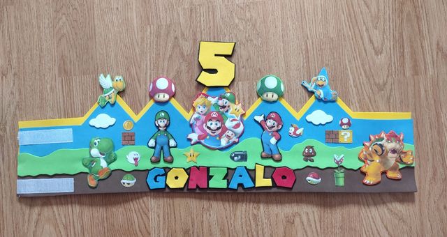 Corona de cumpleaños hecha a mano, de goma eva, totalmente personalizable de cualquier personaje con nombre y edad. Puedes preguntarme sin compromiso.
