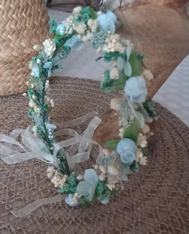 Corona de Comunión Flores Azules y Verdes