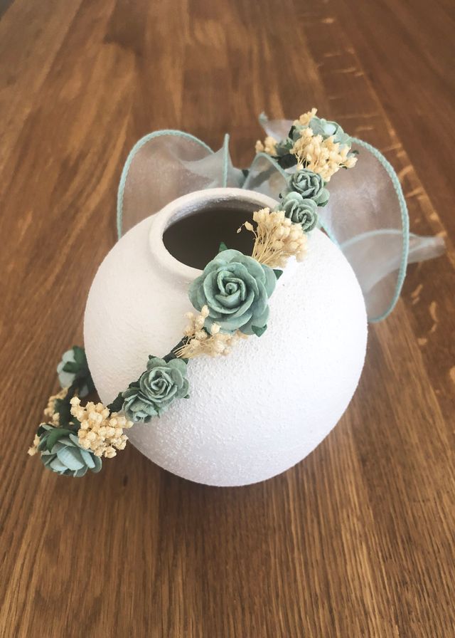 Corona flores verde-crema