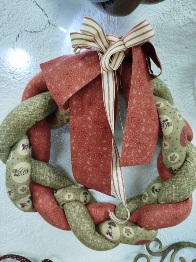 Corona decorativa Presenta un diseño trenzado con dos tipos de tela. - Lazos decorativos