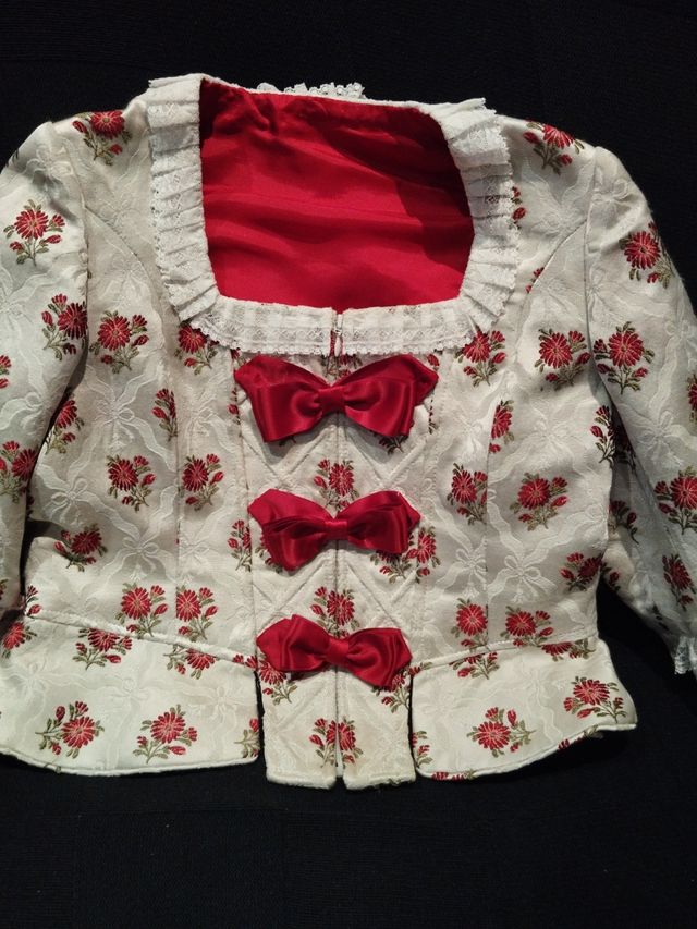 Corpiño fallera SEDA siglo XVIII sin manteletas en blanco roto y detalles en rojo