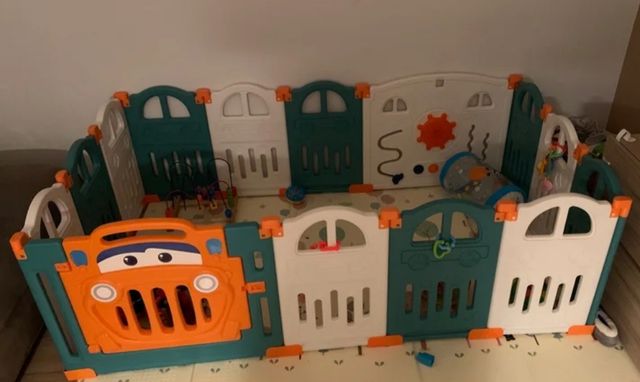 Detalles del productoVendo corralito infantil en buen estado. Le faltan las pegatinas de la puerta y una pieza de las naranjas del suelo que venía sin ella, nosotros lo usamos sin ella ya que no afecta para nada. En el suelo teníamos colchonetas de ikea que modificamos para que entraran, puedo incluirlas. Precio no negociable.