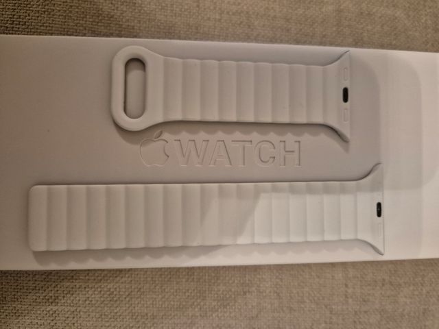 Detalles del productoCorrea compatible con Apple watch de 38/40/41/42mm imantada, suave al tacto, de color blanco por delante y negro detrás. Iphone. SmartWatch. Medidas del producto