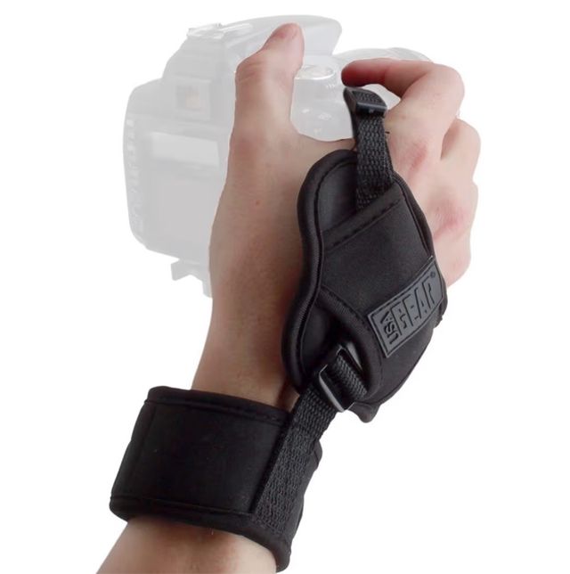 Muñequera negra de neopreno para cámara fotográfica. Marca USA Gear. Como nueva.
