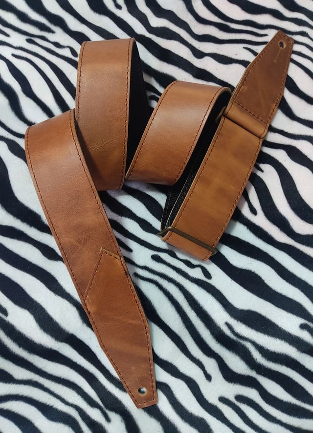 Detalles del productoCorrea de guitarra hecha a mano en cuero marrón envejecido con efecto Pull-Up. Muy buena resistencia al desgaste.