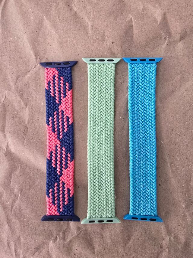 Detalles del productoCorrea Solo Loop Trenzada en 3 colores diferentes. Para Apple watch de 38-40-41-1 42 Serie 10 " mm talla M 13 cm. Serie 3-4-5-6-7-8-9-10-11-SE