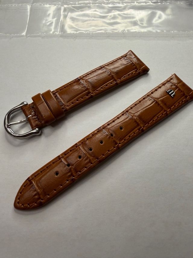 Correa original para reloj Maurice Lacroix, fabricada por la marca alemana Eulit. Piel de becerro con estampado de aligator. Hebilla original y logotipo de la marca.