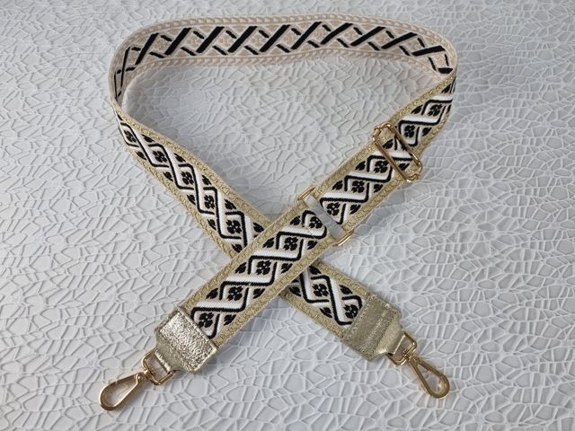 Correa para Bolso Oro-Piel - Blanco-Negro