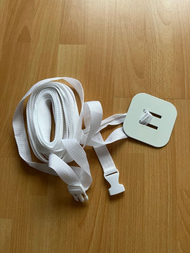 Correa de sujeción para cuna de colecho. - Color blanco. - Material de nylon resistente. - Incluye hebillas de plástico para ajuste.
