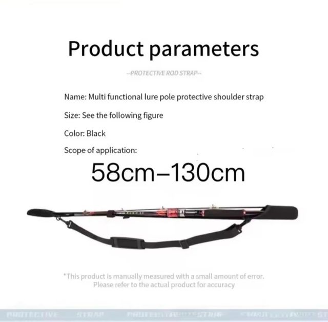 Correa protectora multifuncional para caña de pescar. ( 5€ la unidad ) - Color: Negro. - Longitud ajustable: 58cm - 130cm.