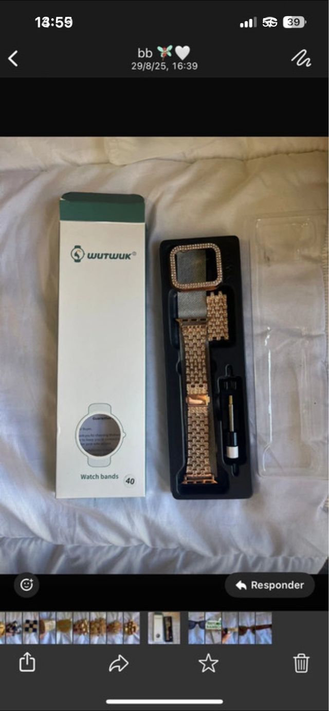 Detalles del productoSet de correa y bisel para Apple Watch de 40mm en color Rose Gold.