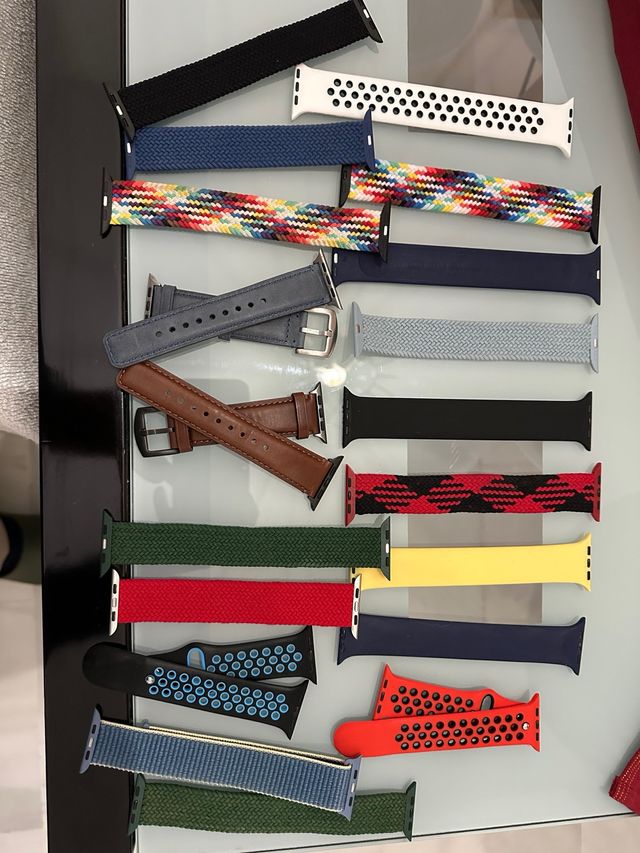 Detalles del productoLote de correas para Apple Watch de diferentes estilos y colores.