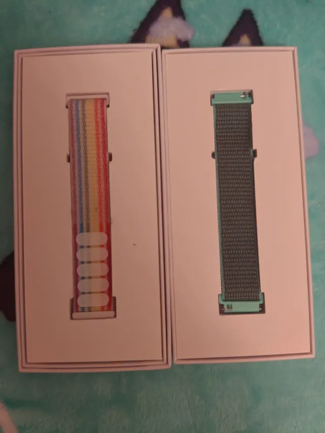 Dos correas de tejido con cierre de velcro, presentadas en su caja original.