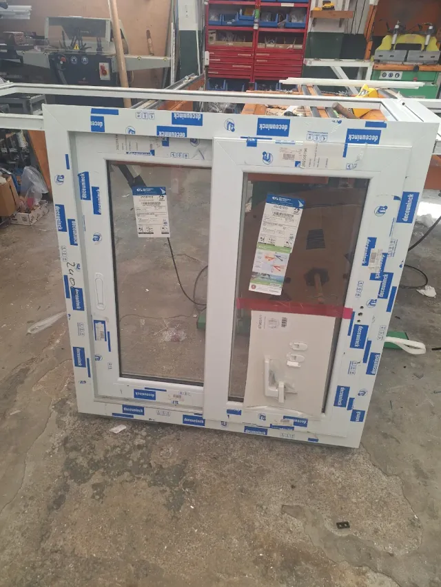 Ventana corredera de PVC en color blanco. - Medidas: 995 mm de ancho x 1020 mm de alto. - Marco de PVC resistente.