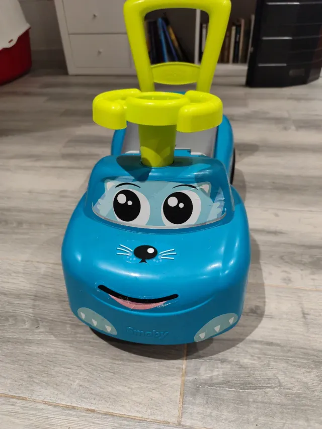 Correpasillos de la marca Smoby con un divertido diseño de gatito. - Color azul. - Asiento cómodo. - Volante con claxon.